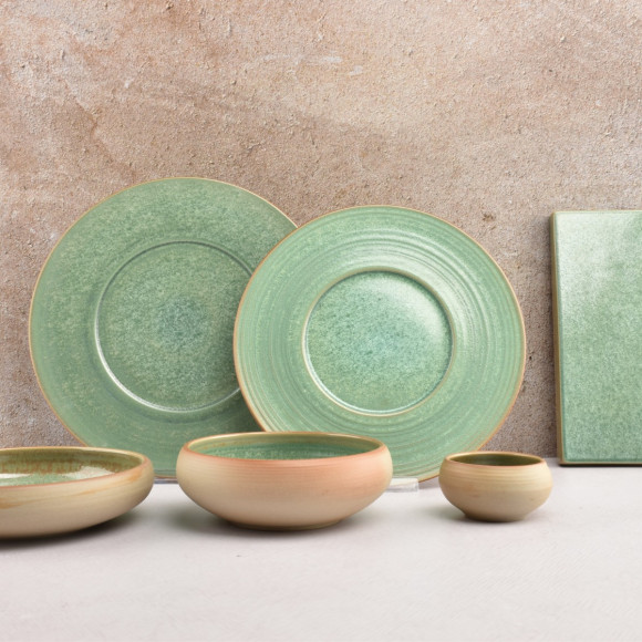 екстраординарна серія порцеляни випромінює мерехтливу охру та зелений блиск,