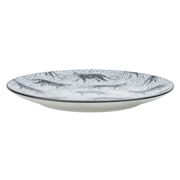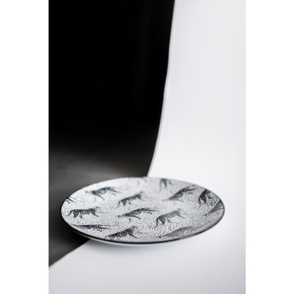 Асортимент цієї колекції включає плоскі тарілки, глибокі тарілки та чаші, прикрашені двома унікальними чорно-білими візерунками, натхненними мотивами тварин. Характерна обробка бортика посудини темним рівномірним кольором ідеально доповнює візерунки, створюючи цілісну композицію.