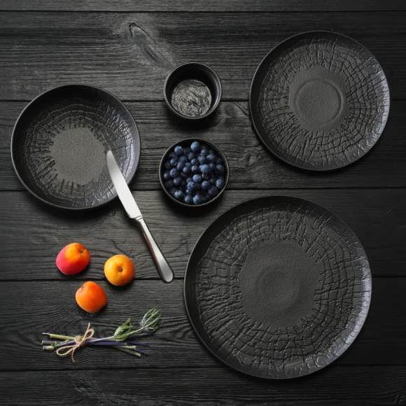 Виготовлено з високоякісної порцеляни, зміцненої оксидом магнію, колекції Crust і Nordic пропонують унікальну текстуру та обробку з міцним природним виглядом. Колекції від інших відрізняє виняткова міцність і довговічність, а також висока стійкість до термічних ударів. Матова поверхня та тиснення надають посуду унікального характеру та створюють відчуття унікальності кожного столу. Посуд можна мити в посудомийній машині та використовувати для розігріву їжі в мікрохвильовій печі. Це найкращий вибір для професіоналів.