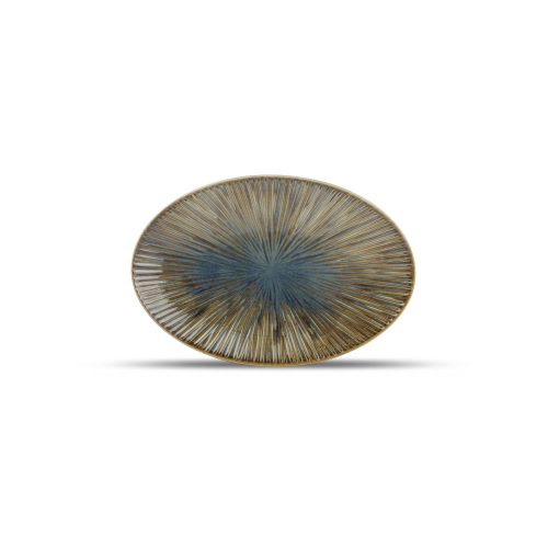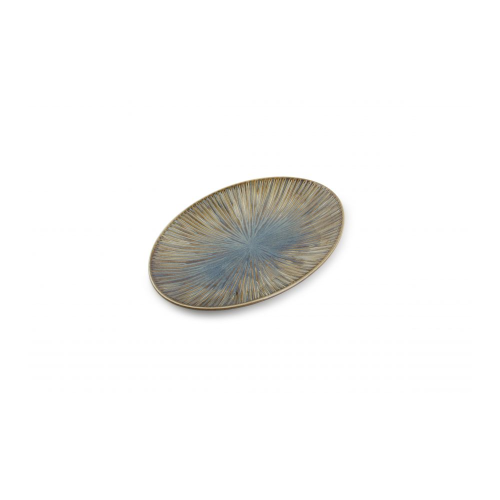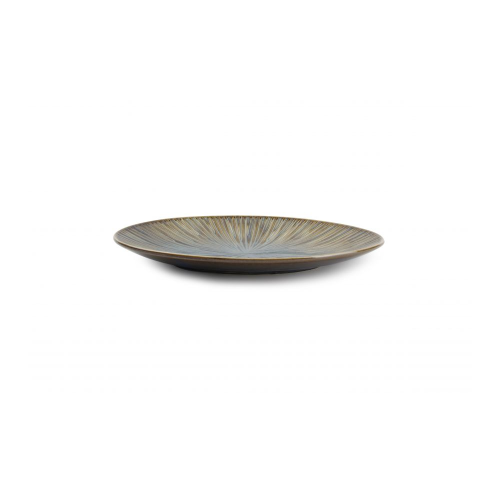 Halo від Fine 2 Dine поєднує інтенсивні теплі тони кольору мушлі з реактивною глазур’ю глибокого океану, яка випромінює назовні від центру кожної унікальної тарілки.