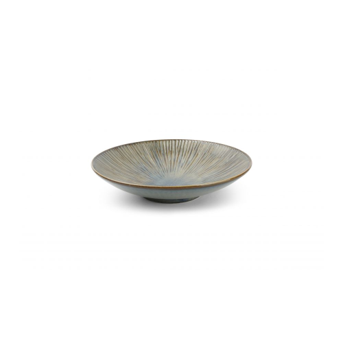 Halo від Fine 2 Dine поєднує інтенсивні теплі тони кольору мушлі з реактивною глазур’ю глибокого океану, яка випромінює назовні від центру кожної унікальної тарілки.